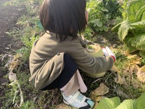 大根と白菜採ってきて!とお願いすると、やる気満々で向かってくれます。