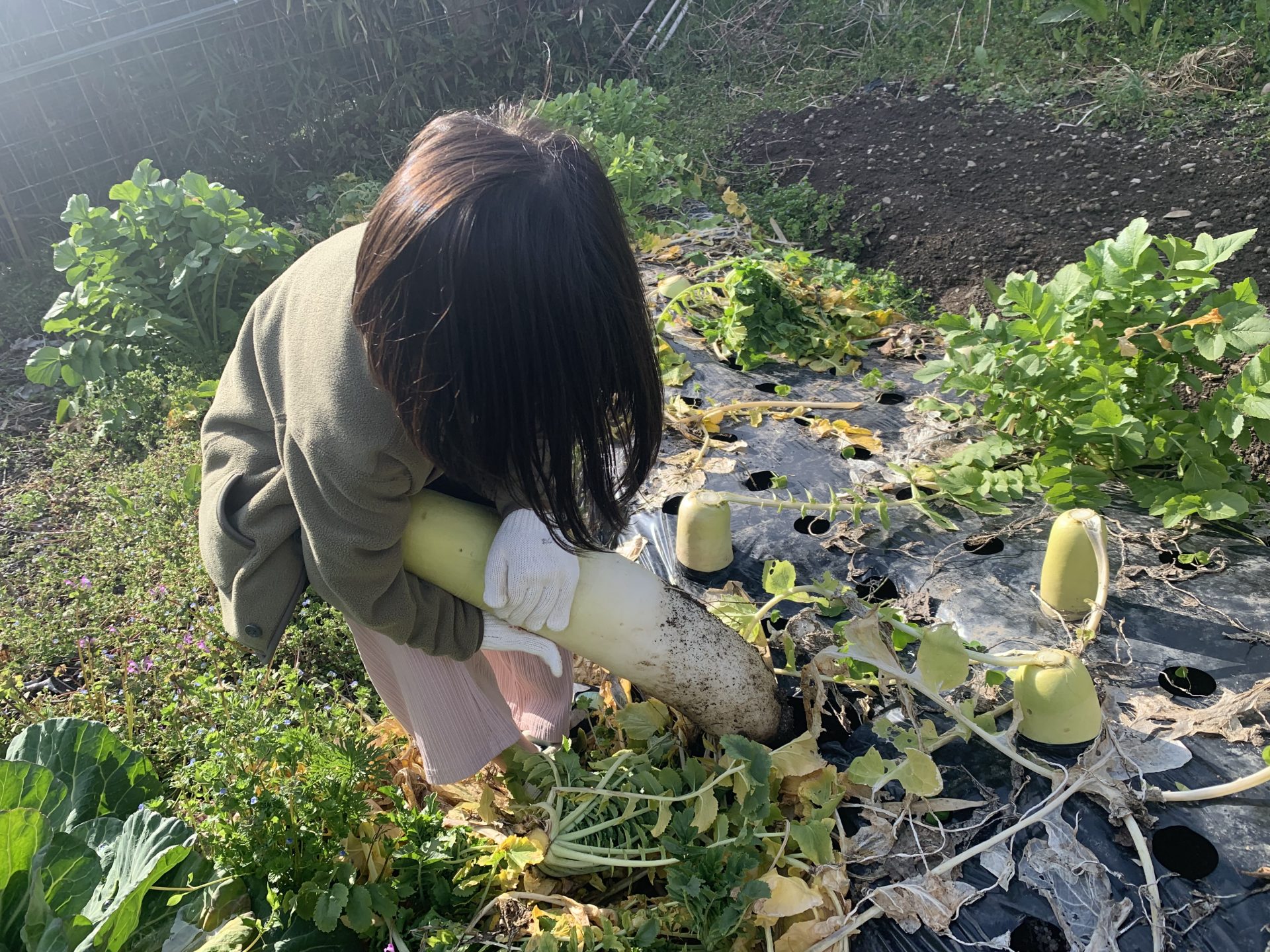 大きく太い大根が沢山育っていましたよ。